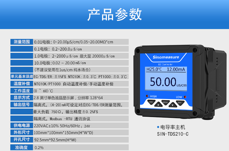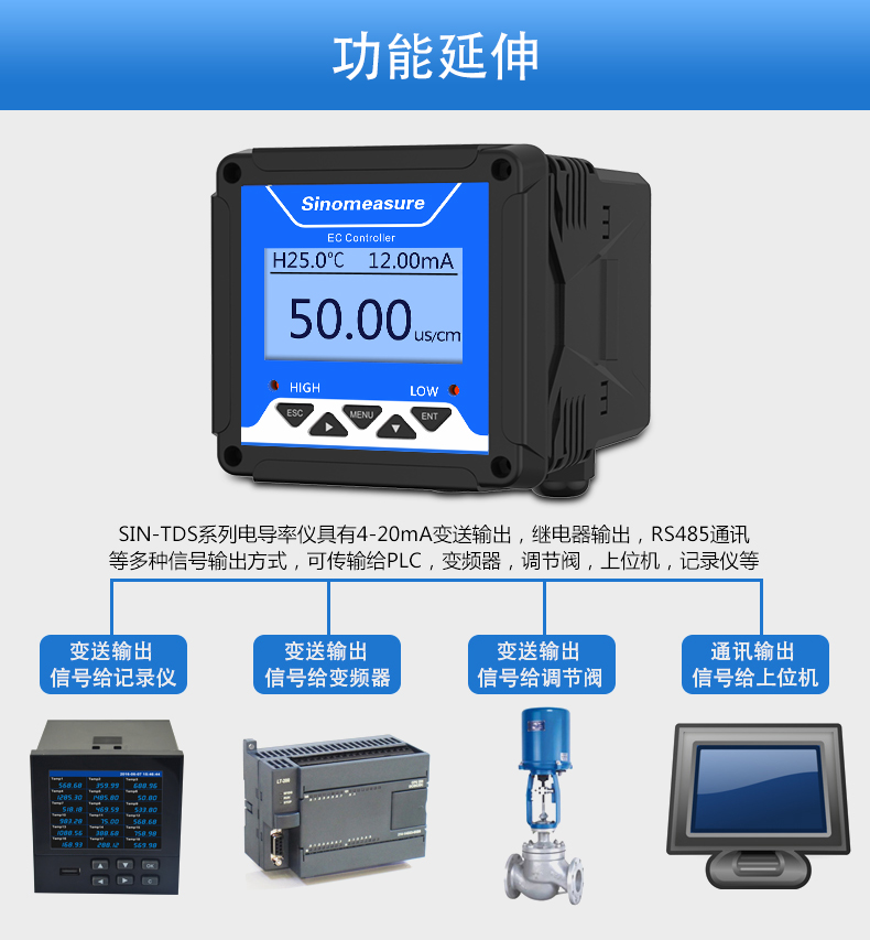 SIN-TDS210-C工業(yè)電導(dǎo)率儀表,廣泛應(yīng)用于火電、化工化肥、冶金、環(huán)保、制藥、生 化、食品和自來水等行業(yè)??刂破髦饕獙θ芤褐械碾妼?dǎo)率/總?cè)芙夤腆w/ 電阻率和溫度進(jìn)行連續(xù)監(jiān)測。CN5