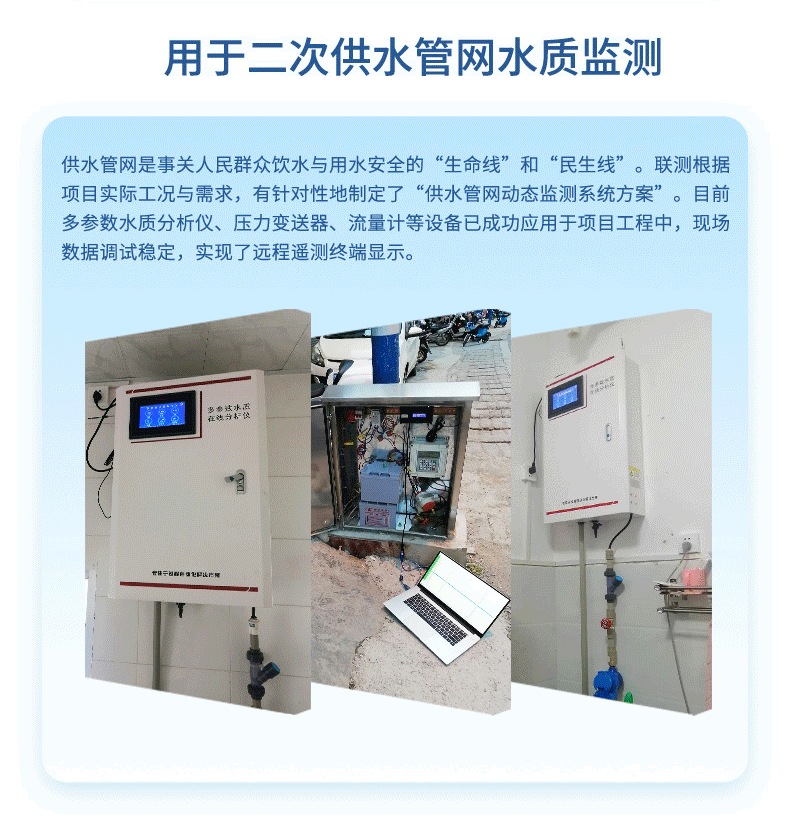 多參數(shù)水質(zhì)在線分析儀是本公司自主研發(fā)制造的新一代飲用水水質(zhì)監(jiān)測(cè)設(shè)備,該設(shè)備可廣泛用于城市或村鎮(zhèn)自來水廠、自來水輸水管網(wǎng)、自來水二次供水、用戶末梢、室內(nèi)游泳池、大型凈水設(shè)備和直飲水等水質(zhì)在線監(jiān)測(cè),是水廠生產(chǎn)過程控制、水利水務(wù)管理、衛(wèi)生監(jiān)督等領(lǐng)域必不可少的在線分析設(shè)備。CN3