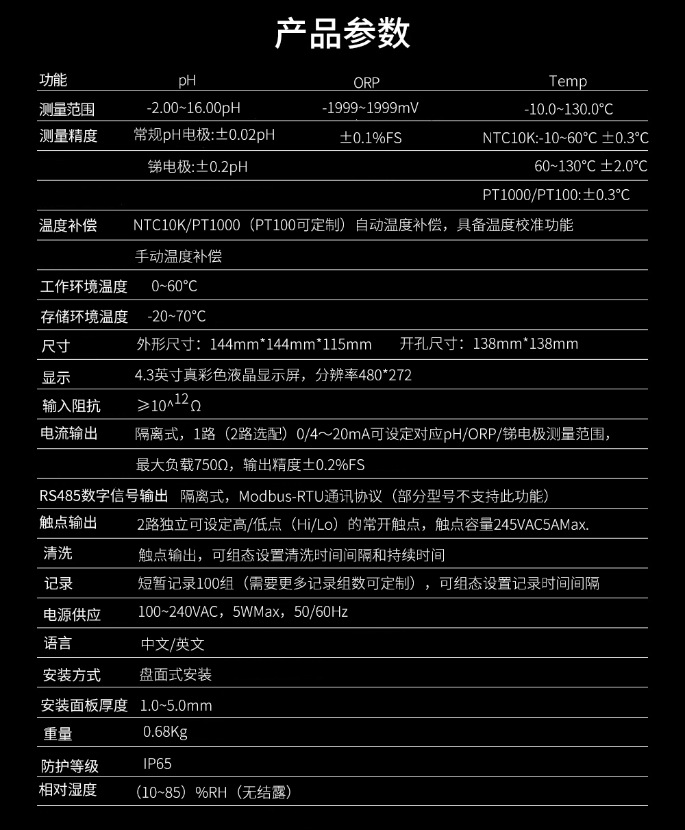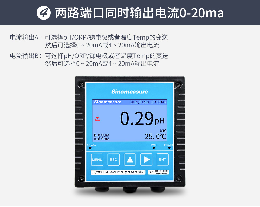 當(dāng)前位置: 首頁 > pH/ORP測量儀 → 聯(lián)測_SIN-pH/ORP8.0大屏4.3英寸在線pH計_帶記錄_帶清洗_