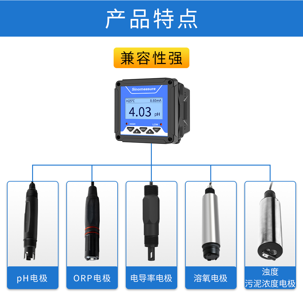 本產(chǎn)品為水質(zhì)通用型控制器,適用于與本公司多種水質(zhì)系列數(shù)字傳 感器配套使用,用于監(jiān)測(cè)包括 pH、ORP、電導(dǎo)率、溶解氧、濁度、污泥 濃度等水質(zhì)參數(shù),監(jiān)測(cè)的參數(shù)通過(guò) RS485 或電流變送輸出到監(jiān)控室進(jìn)行 記錄保存。CN1