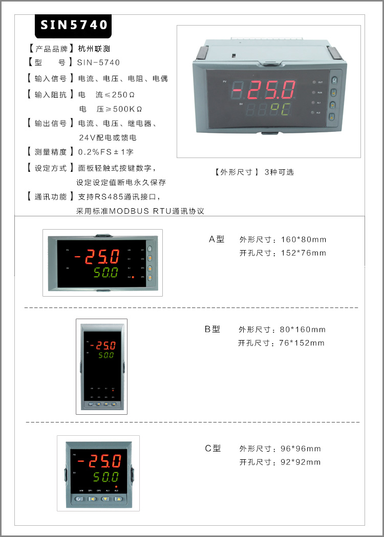 SIN-2740四回路數(shù)字顯示控制儀采用了表面貼裝工藝,全自動貼片機生產(chǎn),具有很強的抗干擾能力。本儀表支持多種信號類型輸入,可與各類傳感器、變送器配套使用,實現(xiàn)對溫度、壓力、液位、速度、力等物理量的測量顯示,可同時顯示四路測量信號,可帶 8 路分別報警輸出或 4 路分別變送輸出功能、RS485/232 通訊等輸出功能,適用于需要進行多測量點檢測的系統(tǒng)。CN3