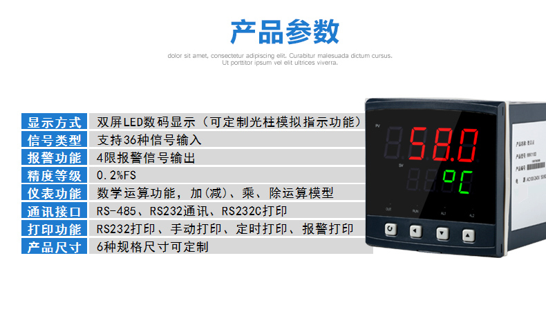 SIN-2200雙回路數(shù)字顯示控制儀采用了表面貼裝工藝,全自動貼片機生產(chǎn),具有很強的抗干擾能力。本儀表支持多種信號類型輸入,可與各類傳感器、變送器配套使用,實現(xiàn)對溫度、壓力、液位、速度、力等物理的測量顯示,帶報警控制、模擬變送輸出、485/232 通訊等輸出功能,帶雙屏數(shù)碼管顯示,可自由設(shè)定上、下窗口顯示內(nèi)容,可訂制數(shù)學運算功能,可針對兩路測量信號進行加、減、乘、除運算,其適用范圍非常廣泛。CN2