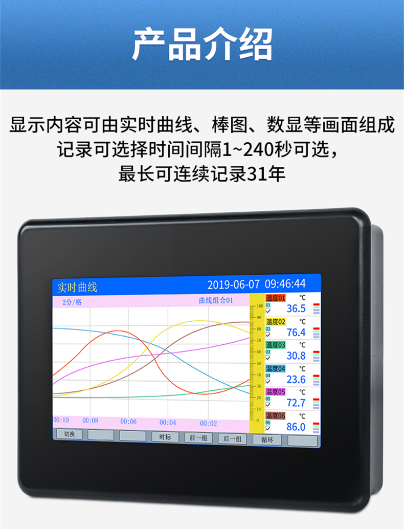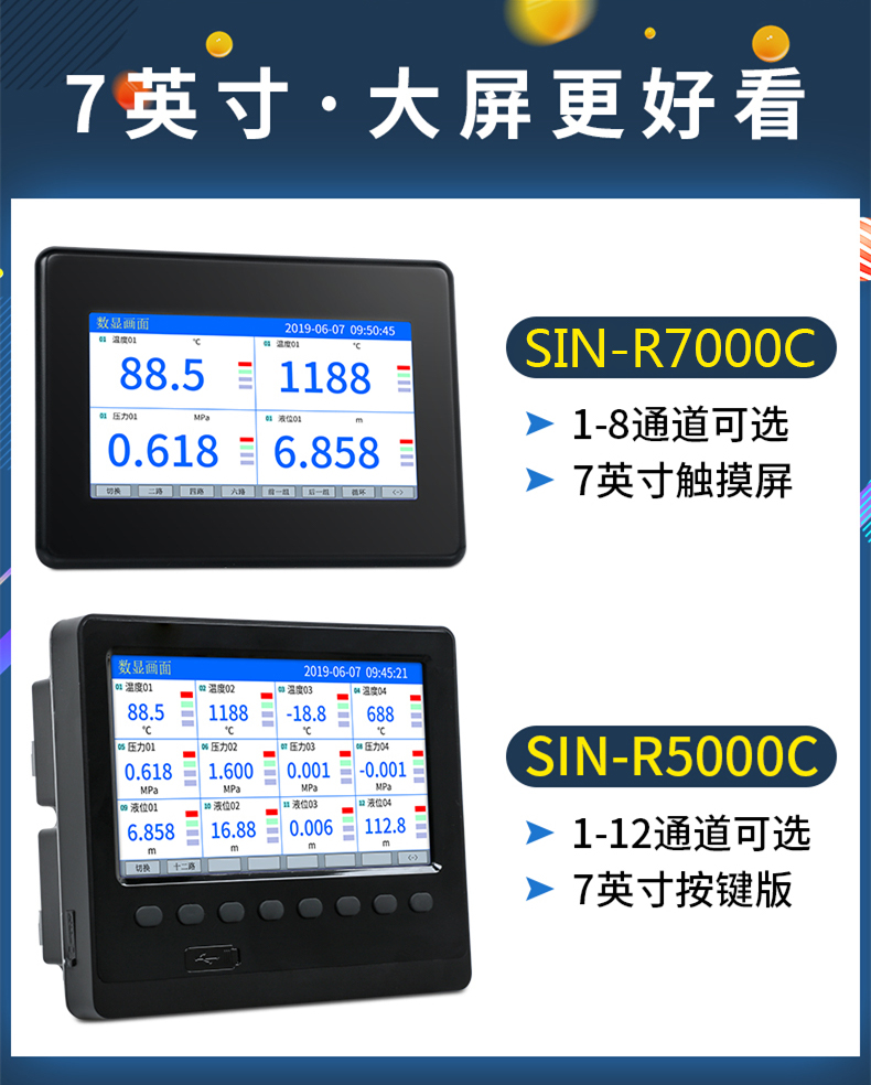 聯(lián)測(cè)_SIN-R7000C_(觸摸屏)1-8路可選_7英寸無(wú)紙記錄儀_溫度_壓力_多種參數(shù)