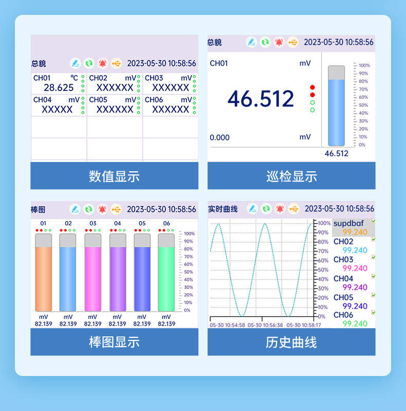 本產(chǎn)品為工業(yè)無紙記錄儀,配置 3.5 英寸 TFT 真彩全視角液晶顯示屏??梢越尤攵喾N類型的電流、電壓、熱電偶和熱電阻等工業(yè)標(biāo)準(zhǔn)信號,實現(xiàn)溫度、濕度、壓力、液位、流量的顯示、記錄、超限監(jiān)控、報表、數(shù)據(jù)通訊、信號變送以及流量累積、流量溫壓補償?shù)裙δ???蓱?yīng)用在冶金、石油、化工、建材、造紙、電力、食品、制藥、工業(yè)水處理等各個行業(yè)。CN1