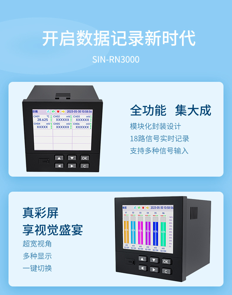 聯(lián)測_SIN-RN3000-1_18 路萬能模擬輸入 3.5 英寸彩色液晶屏無紙記錄儀_溫度_壓力_多種參數(shù)