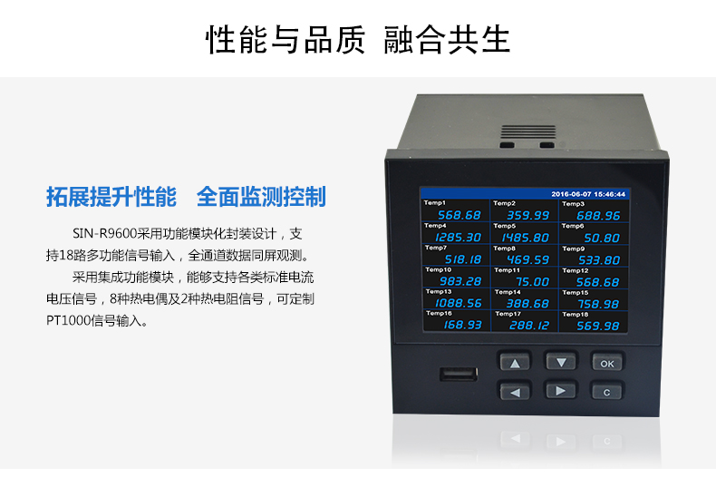 SIN-R9600無(wú)紙記錄儀內(nèi)部采用高速、高性能32位cortex-M4微處理器。電路板經(jīng)過(guò)“防腐、防潮、防塵”三防涂覆處理。高性能儀表電源有強(qiáng)大的抗干擾能力,能有效抑制外部諧波干擾,大大提高了整機(jī)的穩(wěn)定性。CN5